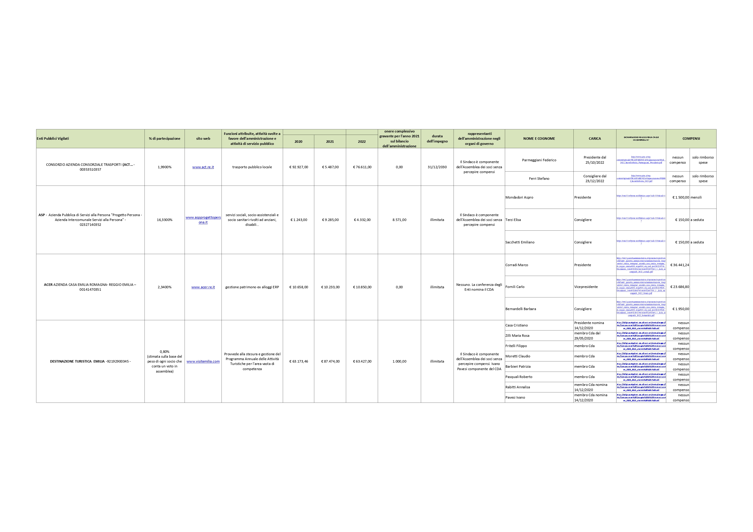 D.Lgs. 33/2013 art. 22, c. 1, c. 2 e c. 3 Dati aggiornati al 31/12/2023 (ultimo bilancio disponibile) ANNO Enti Pubblici Vigilati Incarichi di amministratore di società …