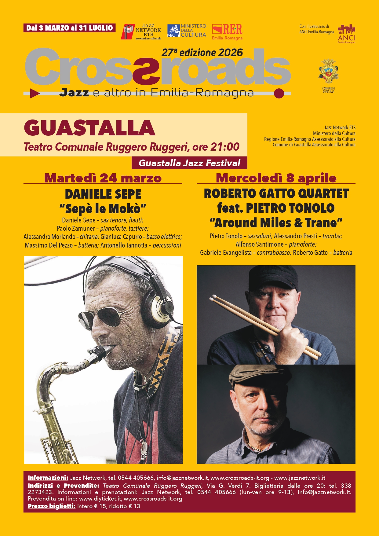 Informazioni e prenotazioni: Jazz Network, tel. 0544 405666 (lun-ven ore 9-13), info@jazznetwork.it. Prevendita on-line: www.diyticket.it.