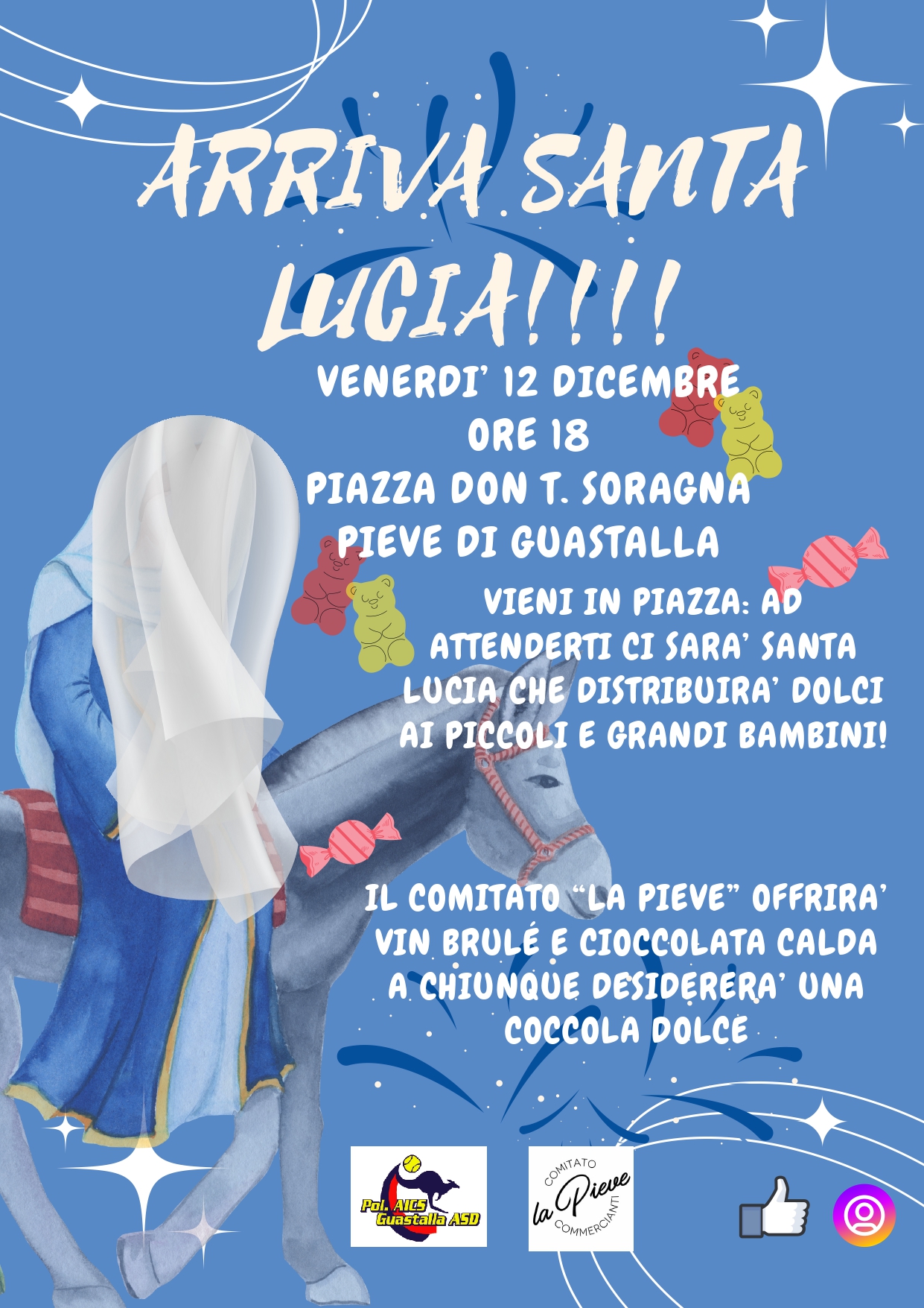 Una serata speciale per bambini e famiglie con Santa Lucia e i suoi asinelli. Vin bulè, cioccolata calda e doni per tutti i bambini. Venerdì 12 dicembre - dalle ore 18.30