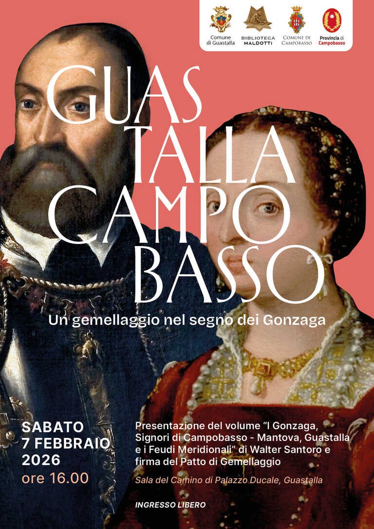 Un gemellaggio nel segno dei GonzagaPresentazione del Volume “I Gonzaga, Signori di Campobasso - Mantova, Guastalla e i Feudi Meridionali” e firma del Patto di Gemellaggio tra i Comuni di Guastalla e Campobasso. Sabato 7 febbraio 2026 - ore 16:00